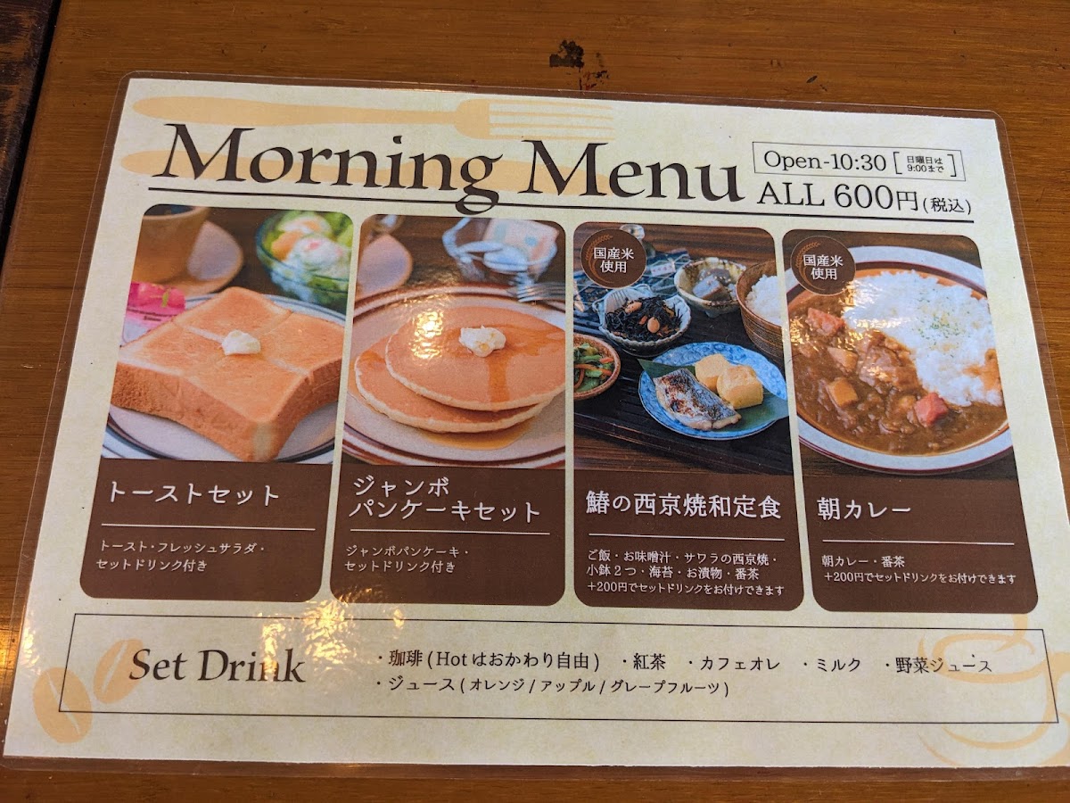 - Breakfast Specials: Start your day with sets priced at ¥600, featuring choices like traditional Japanese breakfasts, complete with rice, fish, miso soup, and pickles.